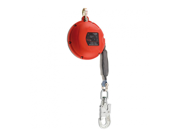 Устройство оснащено амортизатором рывка и поворотным карабином. Защитный корпус изготовлен из АБС пластика.