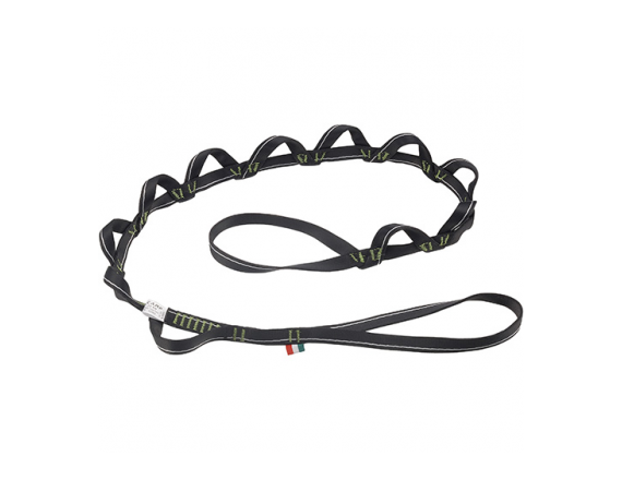 Дейзи чейн TWIST с петлями для подвески лесенок, жумара (каждая из них выдерживает до 5кН на разрыв). Спиралеобразное крепление петель исключает случайное неправильное встегивание карабина в соседние петли стандартных дейзи чейн. Крайняя петля имеет перекрут, поэтому ее можно привязывать к системе с помощью «полусхватывающего» узла (girth hitch). Сделана из прочной 16 мм полиэстеровой стропы.