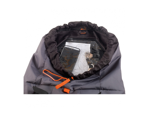Когда он пустой, утягивается так, что не мешает даже в каминах. В спине нет встроенного каркаса, вместо него небольшой коврик, толщиной 6 мм. Его можно использовать для экстренных ночёвок. Рюкзак закрывается и открывается двумя движениями даже замёрзшими пальцами в толстых перчатках.