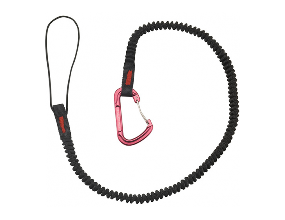 Эластичный строп для закрепления молотка к страховочной системе и предотвращения его потери. Петля из репшнура на конце для закрепления на рукоятке молотка. Соединительный дюралюминиевый карабин рассчитан на нагрузку 20 кг. Материал стропа - нейлон.