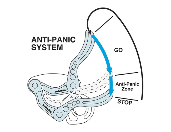 • Запатентованная система Антипаник автоматически блокирует веревку, если пользователь теряет контроль над спуском