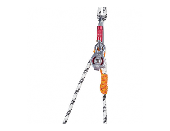 Новый ролик с фиксированными щечками от CAMP на латунной втулке. Специальный клык в конструкции помогает для работы со схватывающими узлами. Диаметр веревки до 13 мм. КПД 80%. Вес 95 г. Нагрузка 24 кН.