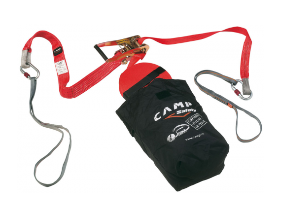 Горизонтальная анкерная линия изготовлена из прочной и долговечной полиэстеровой ленты. Предназначена для одновременного использования не более, чем двумя работниками. Оснащена стальным устройством для натяжения и двумя крепежными петлями из полиамида (арт.104065), а так же имеются два стальных карабина (арт.0981).