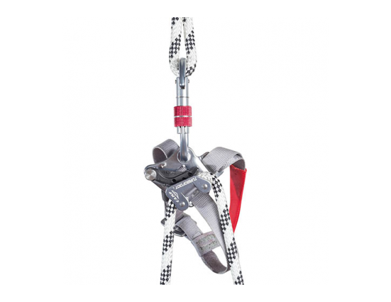 Инновационный ножной зажим со встроенными запатентованными стальными роликами, которые позволяют устройству работать эффективнее (низкий коэффициент трения на веревке, снижают износ и повреждение верёвки).